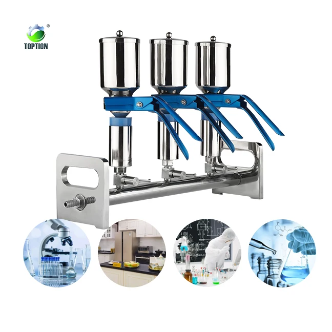 Multi-branch Manifolds filter is a solvent filtration equipment of laboratory . Compared with the glass sand core , It is more convenient , efficient for the operator who needs to filtrate several samples at the same time . Because each filter holder have individual control valve , only one set vacuum pump can sustain the single or Multi-branch manifold filter operate together . Production equipments are imported from German DMG numerical control machine . Material use sanitary stainless steel , acid and alkali resistance , corrosion resistance , high temperature resistance , can tolerate the high temperature of 180℃ , easy to sterilization in high temperature . Under the strict quality control , production process make the product more superior quality guarantee . Advanced production equipment , high-quality production of raw materials , perfect production technology and technical support is the guarantee of excellent products , make our manifolds vacuum filteration domestic professional leading brand .